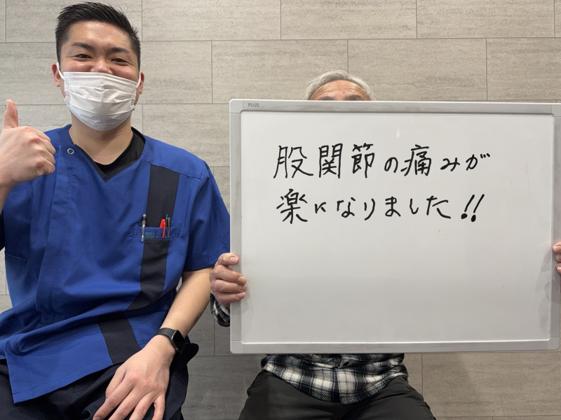 「痛くないところを施術してもらったら、股関節の痛みが取れました!」Q.どのような症状で当院をご利用されましたか? A.昨年3月から右の膝と腰の痛みを感じて歩きにくさを感じました。 O.症状によってどのようなことがお悩みでしたか? A.日常で動くことが辛くて、立ち座り歩くその状況全てに苦痛を感じていました。 Q.当院に通っていただきどのようなところにご満足いただけましたか? A.3ヶ月経過して股関節の痛みが楽になって、動くのが楽になりました! Q.実際に施術を受けてみて感想や現在のご症状はいかがですか? A.痛みのある部分ではなくて、痛みのない別のところの施術で改善するので理屈に合わないところは不思議ですが、とにかく良くなっている実感はあります! ※個人の感想です。効果には個人差があります。 |