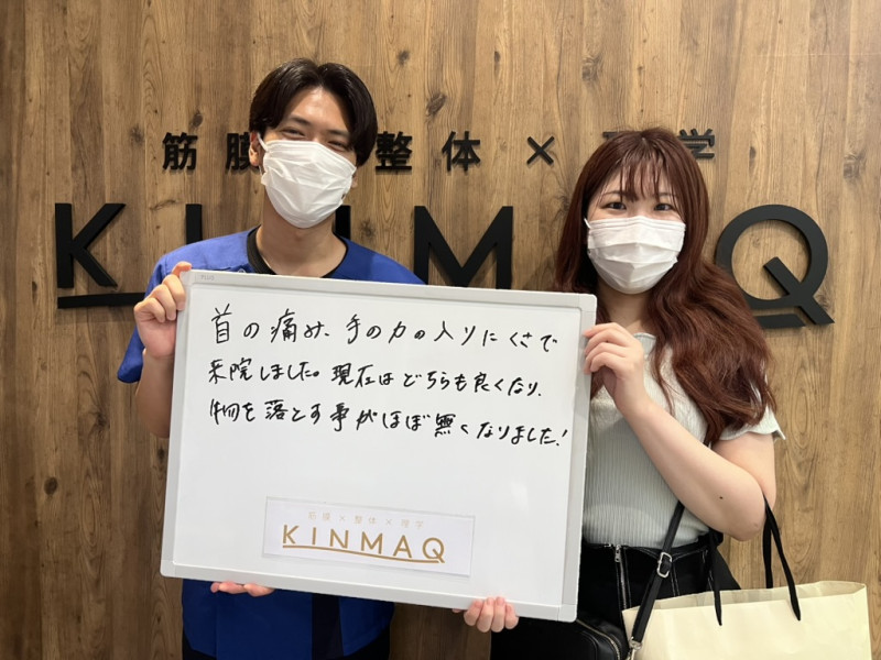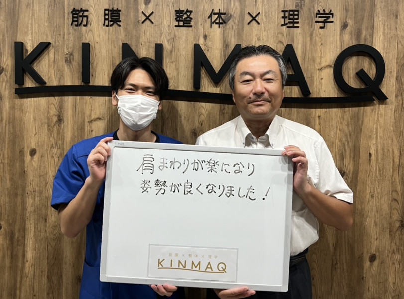 「徐々に肩が軽くなってきました!」 デスクワーク中心の仕事を始めてから肩の凝りが徐々に強くなり、仕事をしていても座っていることが辛いことが増えてきました。 病院へ行っても良くならないため、どうしようか悩んでいましたが、KINMAQ整体院のお店を見つけて実際に受けてみました。 筋膜の施術を受けて徐々に肩が軽くなっているので、これからもぶり返さないように定期的に通っていきたい思います! |